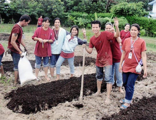 A kitchen garden project set up every department can have their own kitchen garden, factory give the land on the back side for workers to plant vegetable and take back home for their cooking. The vegetable can only grow with organic fertilizer can not use any chemical.